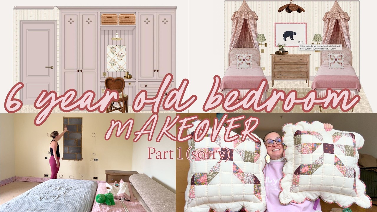 Create a YouTube thumbnail inspired by "6 Year Old Bedroom Makeover - New Traditional British Styling - Part 1 - Caroline x". Make it vibrant, high-contrast, and attention-grabbing at small sizes.