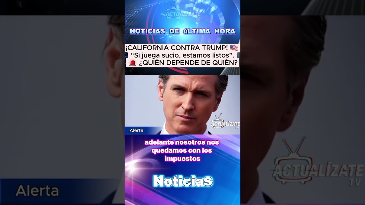 Create a YouTube thumbnail inspired by "¡CALIFORNIA SE REBELA! La respuesta de Newsom que dejó mudo a Trump: 'Usted depende de nosotros". Make it vibrant, high-contrast, and attention-grabbing at small sizes.