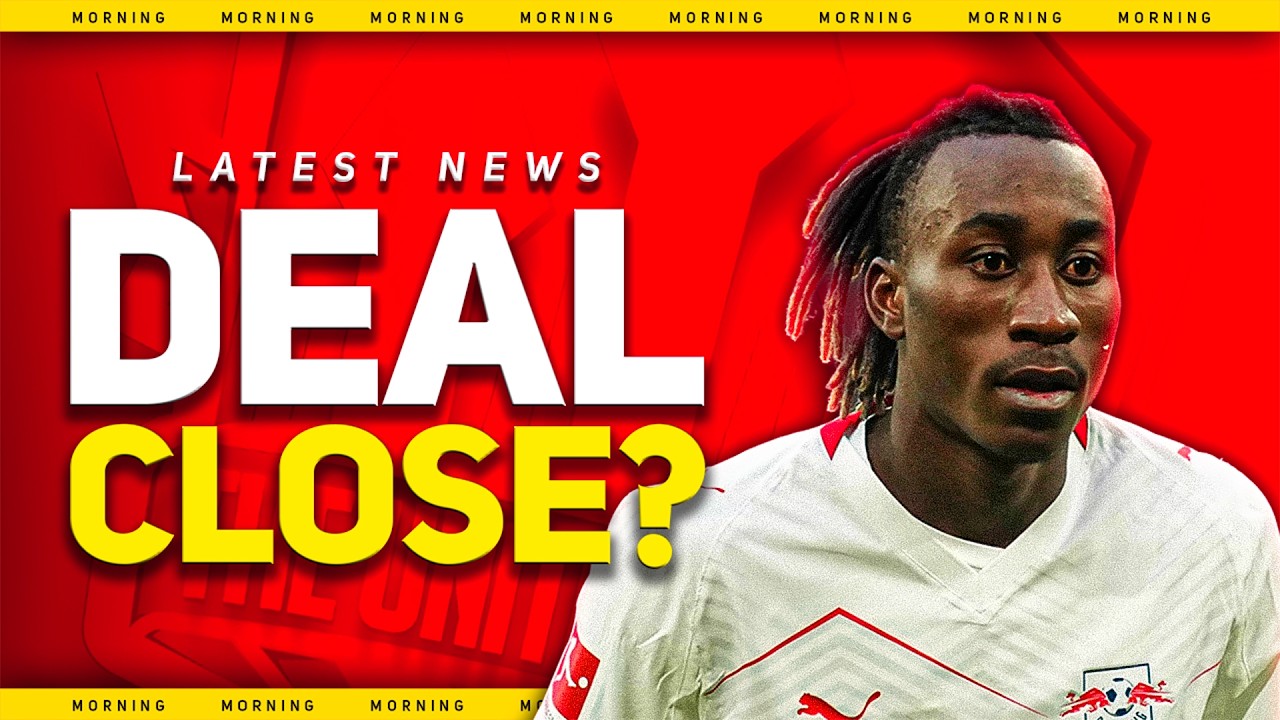 Create a YouTube thumbnail inspired by "Diomonde TRANSFER Talks! Tonali Replaces Baleba? Man Utd Transfer News". Make it vibrant, high-contrast, and attention-grabbing at small sizes.