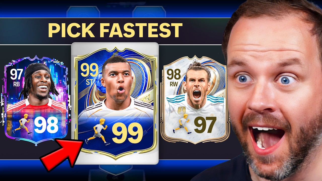 Create a YouTube thumbnail inspired by "Draft But I Pick The FASTEST Player". Make it vibrant, high-contrast, and attention-grabbing at small sizes.