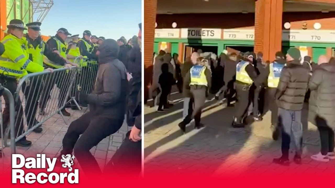 Furious Celtic fans face down police during Parkhead Old Firm protest as they demand board go