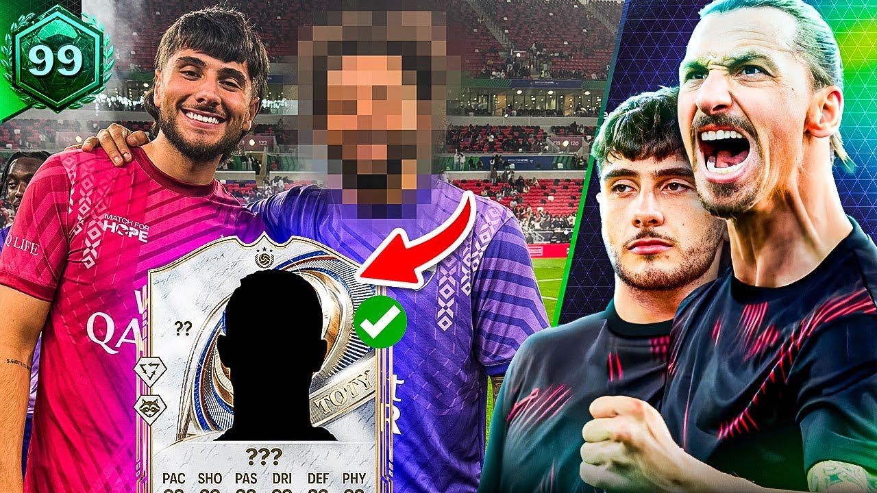 Create a YouTube thumbnail inspired by "He Destroyed Me IRL So I Did His SBC On The RTG...". Make it vibrant, high-contrast, and attention-grabbing at small sizes.