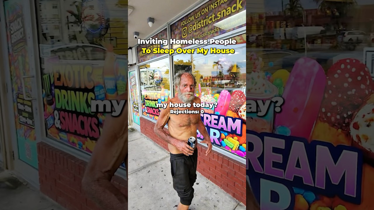 Create a YouTube thumbnail inspired by "Inviting Homeless People To Sleep Over My House". Make it vibrant, high-contrast, and attention-grabbing at small sizes.