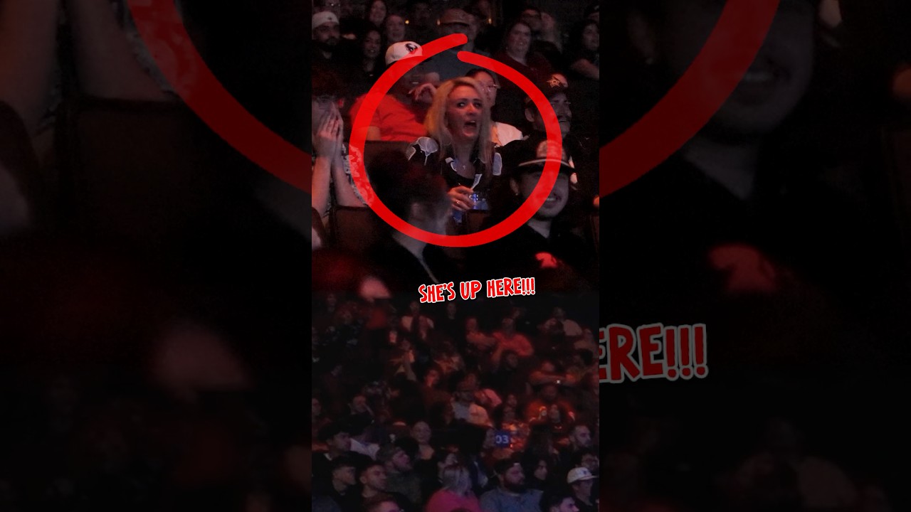 Create a YouTube thumbnail inspired by "my 7th grade teacher came to my show ??". Make it vibrant, high-contrast, and attention-grabbing at small sizes.