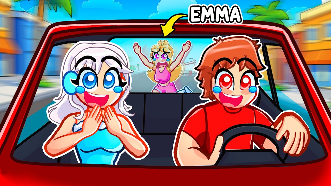 Create a YouTube thumbnail inspired by "We Ran Away From Emma For 24 Hours In GTA 5...". Make it vibrant, high-contrast, and attention-grabbing at small sizes.